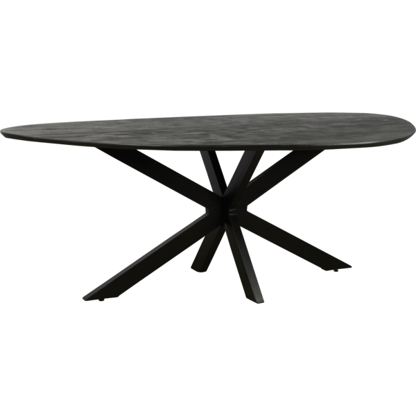 Deze eigentijdse tafel combineert speelse vormen met praktisch design. Het tafelblad heeft een bijzondere vorm: aan de ene zijde een elegante, ovale ronding en aan de andere zijde een strakke, rechte lijn. Dit maakt de tafel niet alleen een echte blikvanger, maar ook ideaal om tegen een muur of bank te plaatsen – perfect voor wie stijl en ruimte optimaal wil benutten.