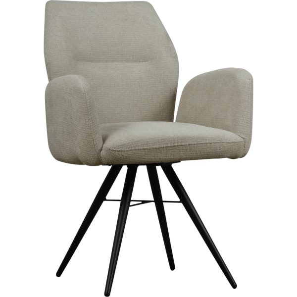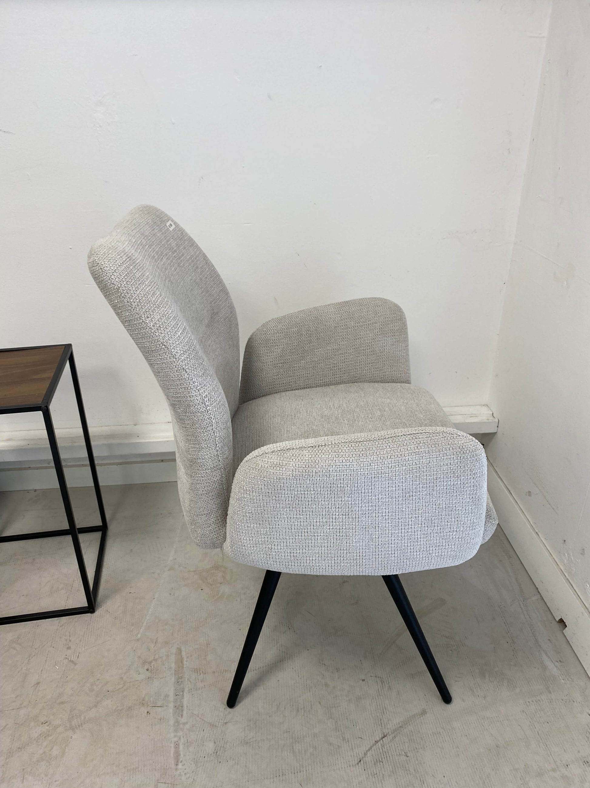 Breng stijl en functionaliteit samen met deze moderne witte eetkamerstoel. Deze stoel is niet alleen een elegante toevoeging aan uw eetruimte, maar biedt ook extra comfort dankzij de leuning en 180 graden draaifunctie. Het zwarte onderstel zorgt voor een mooi contrast en geeft de stoel een eigentijdse, strakke uitstraling.