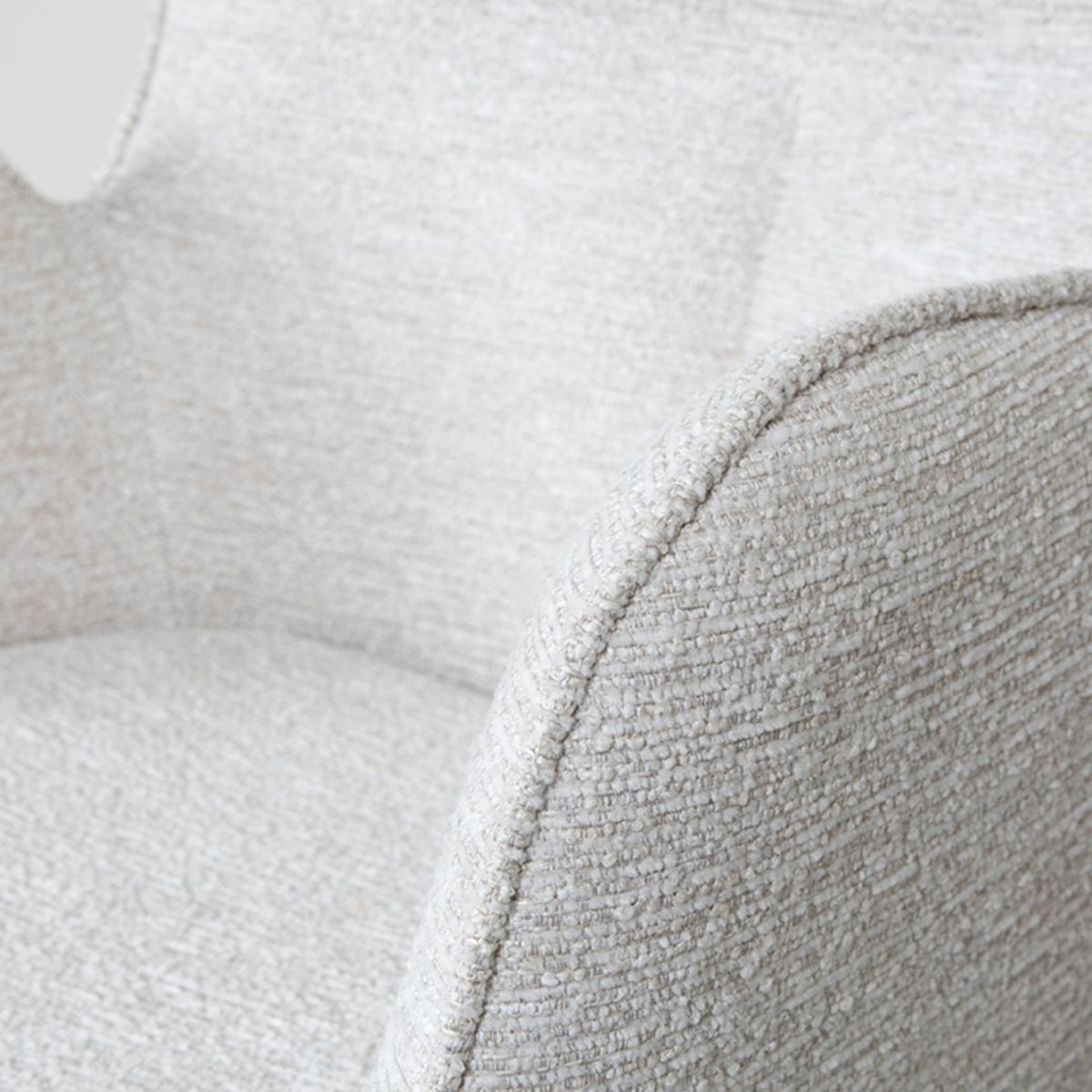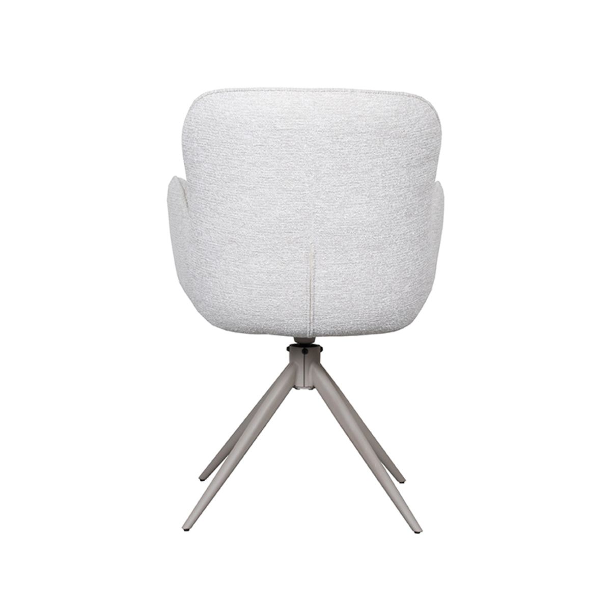Eetkamerstoel Lasse is draaibaar, en voorzien van een automatic return systeem, waardoor je eenvoudig in alle richtingen kunt bewegen, en de stoel na gebruik weer netjes terugdraait naar zijn originele positie. Bovendien zijn de poten uitgevoerd in taupe metaal, waardoor deze stoel perfect past in een Scandinavisch of Japandi interieur.