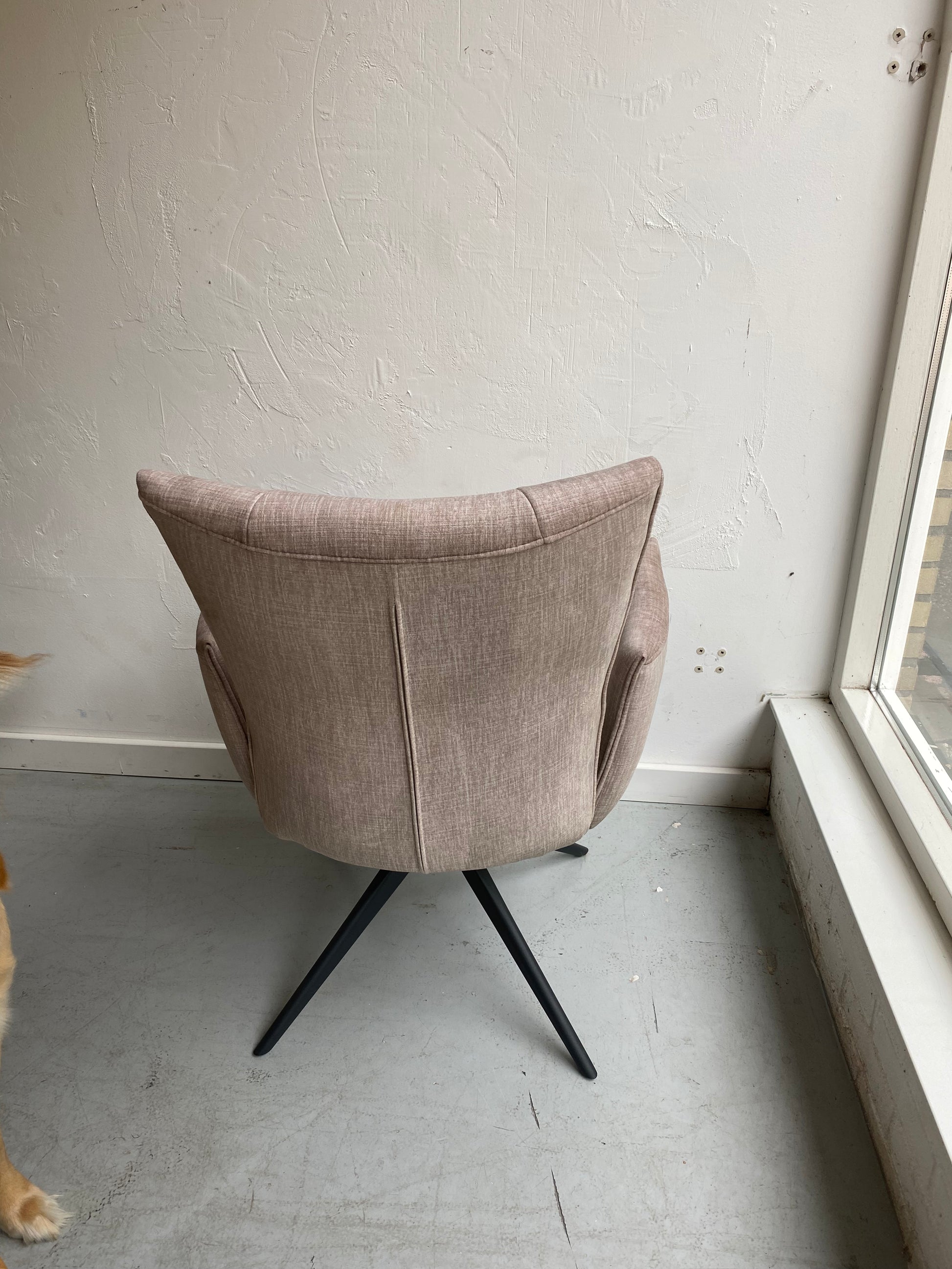 Deze moderne eetkamerstoel met armleuning combineert minimalistisch design met ultieme functionaliteit. Dankzij de 180 graden draaifunctie biedt deze stoel flexibiliteit en gemak, terwijl het zwarte onderstel een stijlvol contrast creëert. Ideaal voor eetkamers of vergaderruimtes waar zowel comfort als design belangrijk zijn.