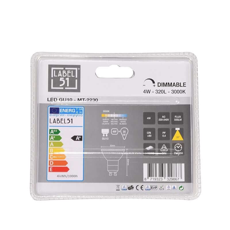 De GU10 LED is een dimbare, ronde lamp. De lamp heeft een warme daglicht kleur (3000 K) en zorgt hiermee voor functionele verlichting, ideaal voor spots en bepaalde wandlampen. De GU10 LED lampen zijn verpakt per 3.