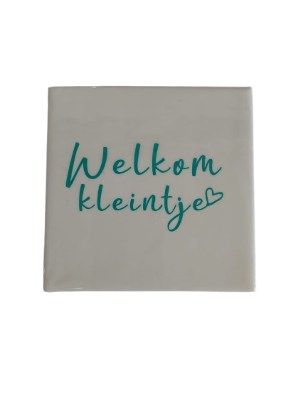 Gemaakt van keramiek, tegeltje is 10 bij 10 cm. Leuk cadeau tip als kraam cadeau!